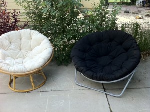 The root of all this evil was a pair of Papasan chairs that were also hanging out in there, taking up half of the floor space. They were surplus furniture – one from the good ol’ days in my first house, circa 2000 , and another left behind a few tenant turnovers ago in the rental house. Both in good shape and fairly stylish and modern, but just with no reasonable place to fit in our current house.