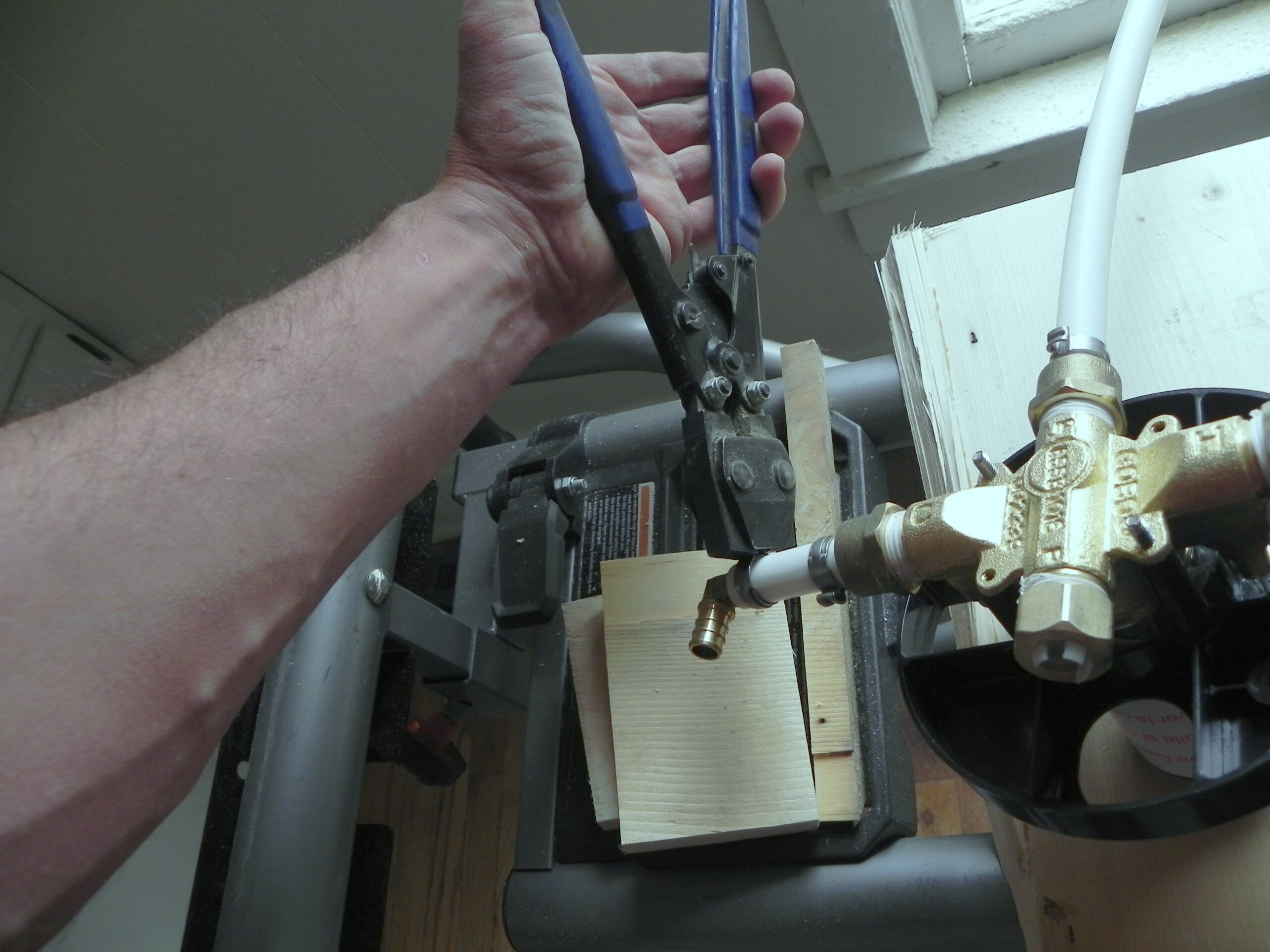 There is a common misconception, even among plumbers, that PEX-related tools are expensive. This is true, if you buy the silly obscure-brand $250 crimping tools that plumbers buy, but I will share with you the secret way to get all the required parts for minimal cost. All you need is:
