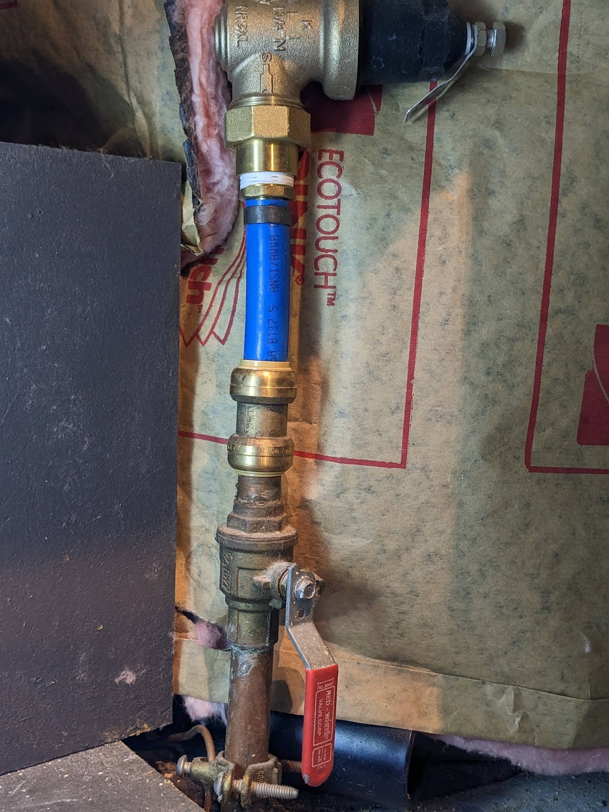Then I pushed on one side of a sharkbite coupler, and took a length of PEX pipe and pushed that firmly into the other end of the coupler.