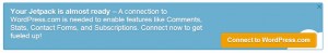 Step 3 – you may have noticed that your dashboard gave you a notice to sign up for a WordPress.com account. This is an account with the actual WordPress company, which is different from the accounts just created here on your own server.