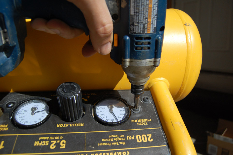 “What The Feather!?”, I cursed as I checked the cords, switches and settings. I eventually found a flaw in its power cord and fixed it, and we were back in business. For about two minutes, at which point I realized the motor was running constantly and never shutting off. There was yet another problem with the machine, this time a broken pressure regulator. Air was hissing out just as fast as the cylinder could pump it in, so it would need to run constantly to maintain the 100PSI that I need for the nailguns.