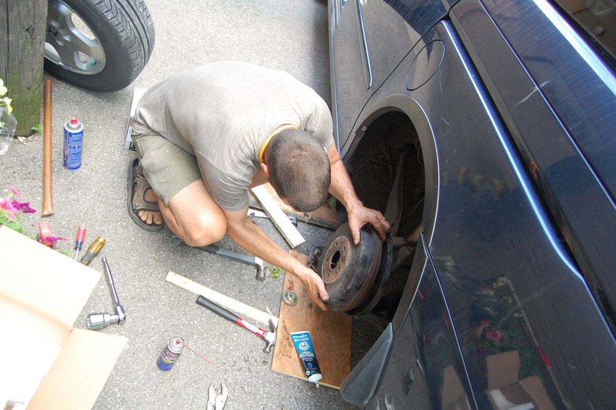 But just recently, my luck ran out. Just before heading to Canada for the summer, I noticed that my Honda minivan started making a humming tire tread sound from the back left wheel. I figured it was just the tire, since sometimes old tires will develop a “feathering” pattern where alternating treads wear out faster than their neighbors and you’re left with a noisy Jeep-tire-like sound. I turned up the stereo a bit louder and made the 1500 mile drive without incident, rushing a bit because my Mom (Grandma Money Mustache to you) needed my help.