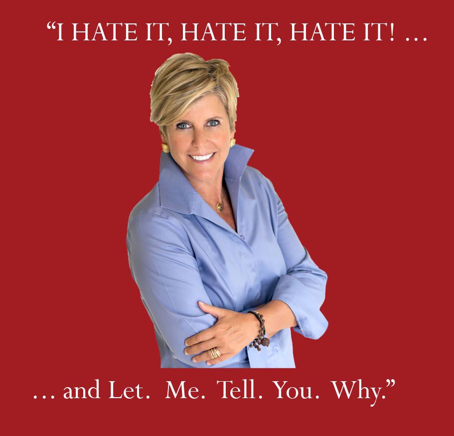 Of course Suze is going to tell people to consume more – would be tough to sell 30 seconds of ad time on a show that preaches not buying shit!