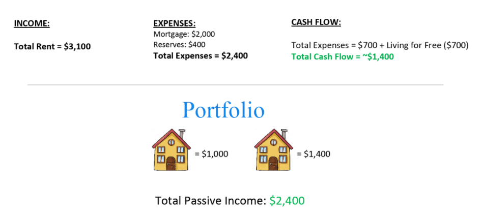 2019: With so much passive income already rolling in, Craig continued to save vigorously and bought another house for $380,000, this time with a 5% downpayment ($19k) plus $32k in repairs and other costs to make it a nice two-unit rental. This brought him to this situation: